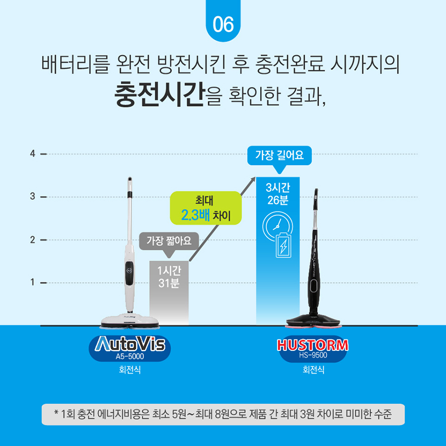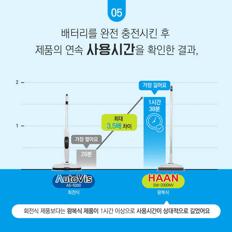 무선 물걸레청소기의 청소성능과 사용시간에 업체별, 기종별로 차이가 있다고 하는데요
