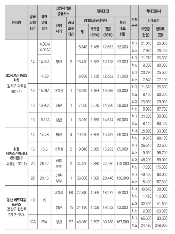 자세한 내용은 SH서울주택공사 홈페이지의 2020년 2차 역세권청년주택 내용을 참고하시면 됩니다.