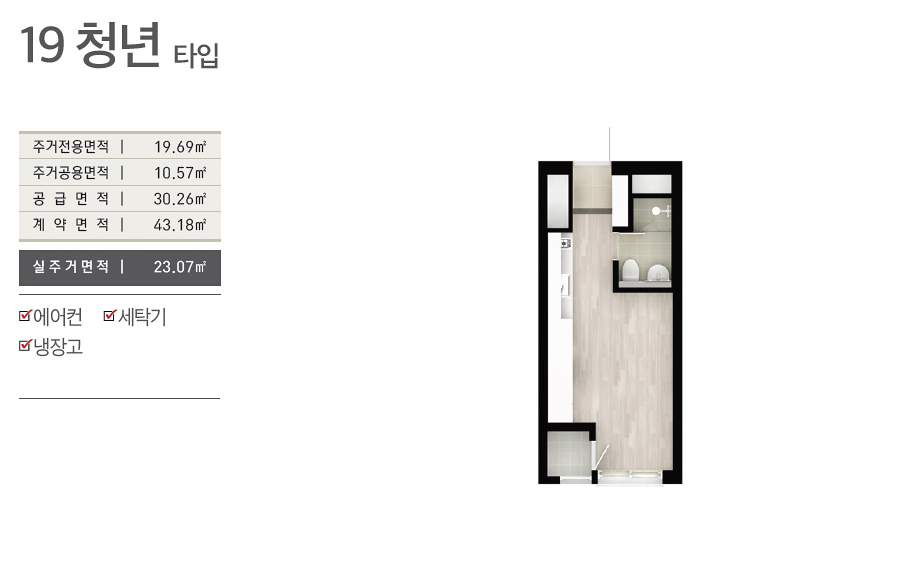 일반적으로 19㎡의 공급면적(원룸)을 가지고 있지만, 이번 용산의 역세권청년주택의 경우
