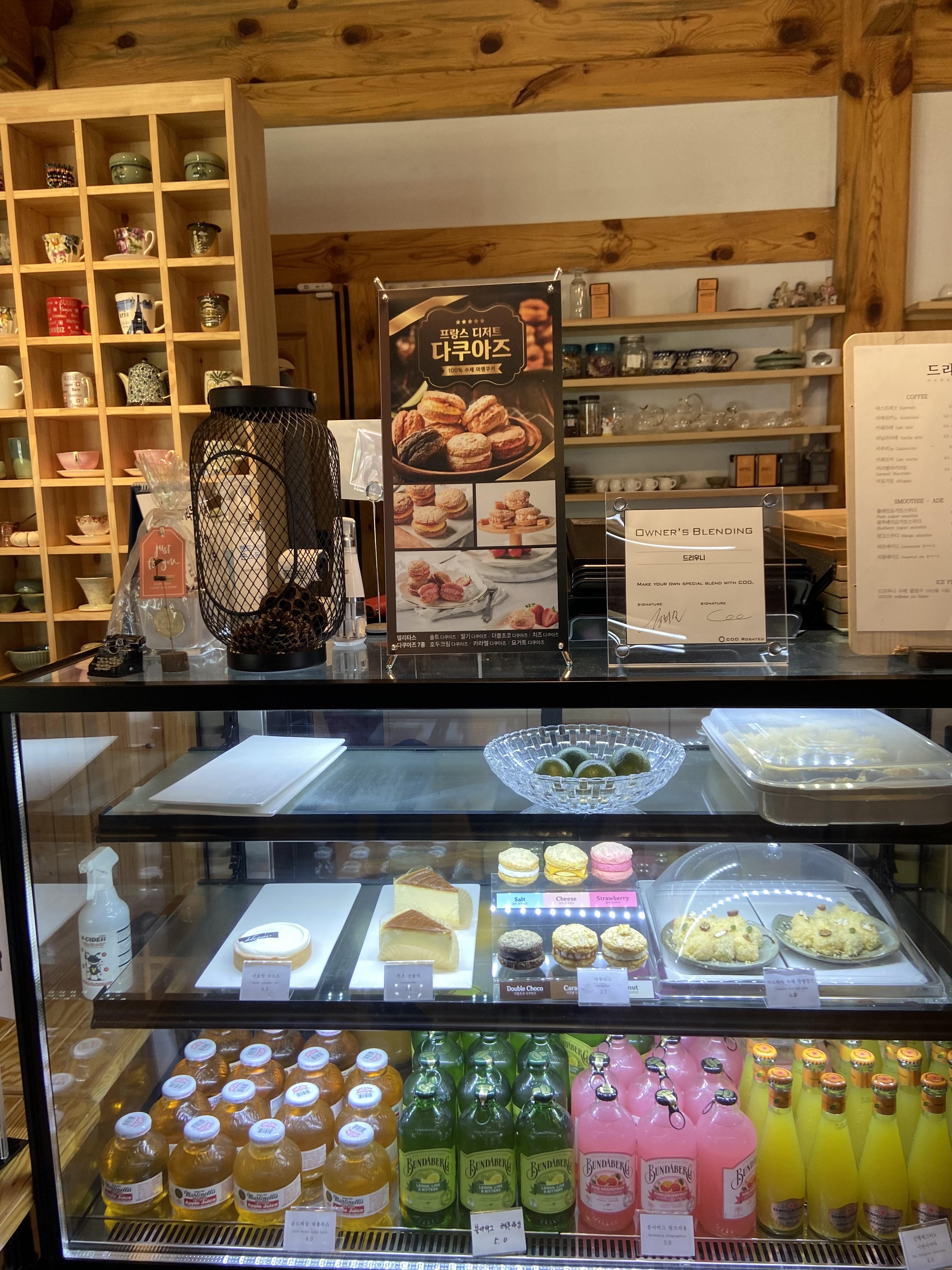 드리우니 카페 내부 카페 내부공간 뿐만 아니라 마당에도 테이블이 있어서 마당에서 커피를 마실 수도 있고,