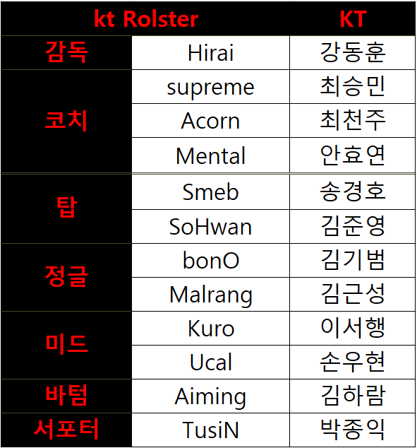 KT 로스터 다음은 KT롤스터입니다.
