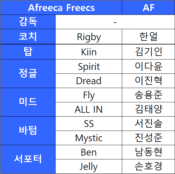 AF 로스터 먼저 아프리카tv의 아프리카 프릭스입니다.