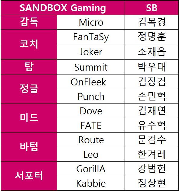 SB 로스터 다음은 샌드박스 게이밍입니다.