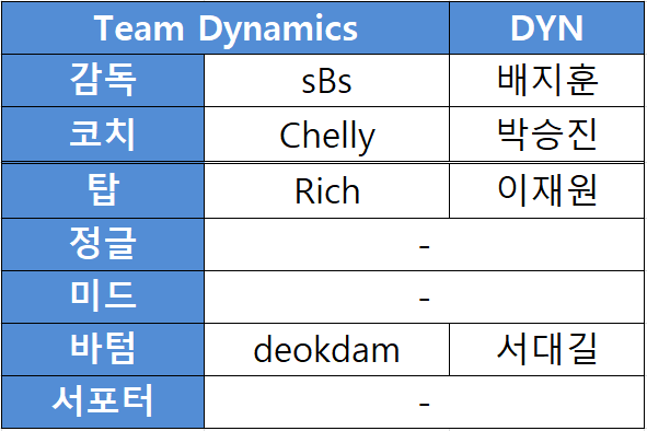 DYN 로스터 마지막으로 팀 다이나믹스입니다.