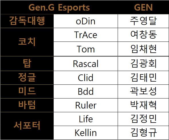 GEN 로스터 다음은 가을의 전설, 젠지 이스포츠입니다.
