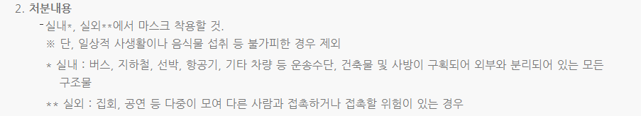 처분 내용에서는 '실내, 실외에서 마스크를 착용할 것'이라고 기록되어 있는데요