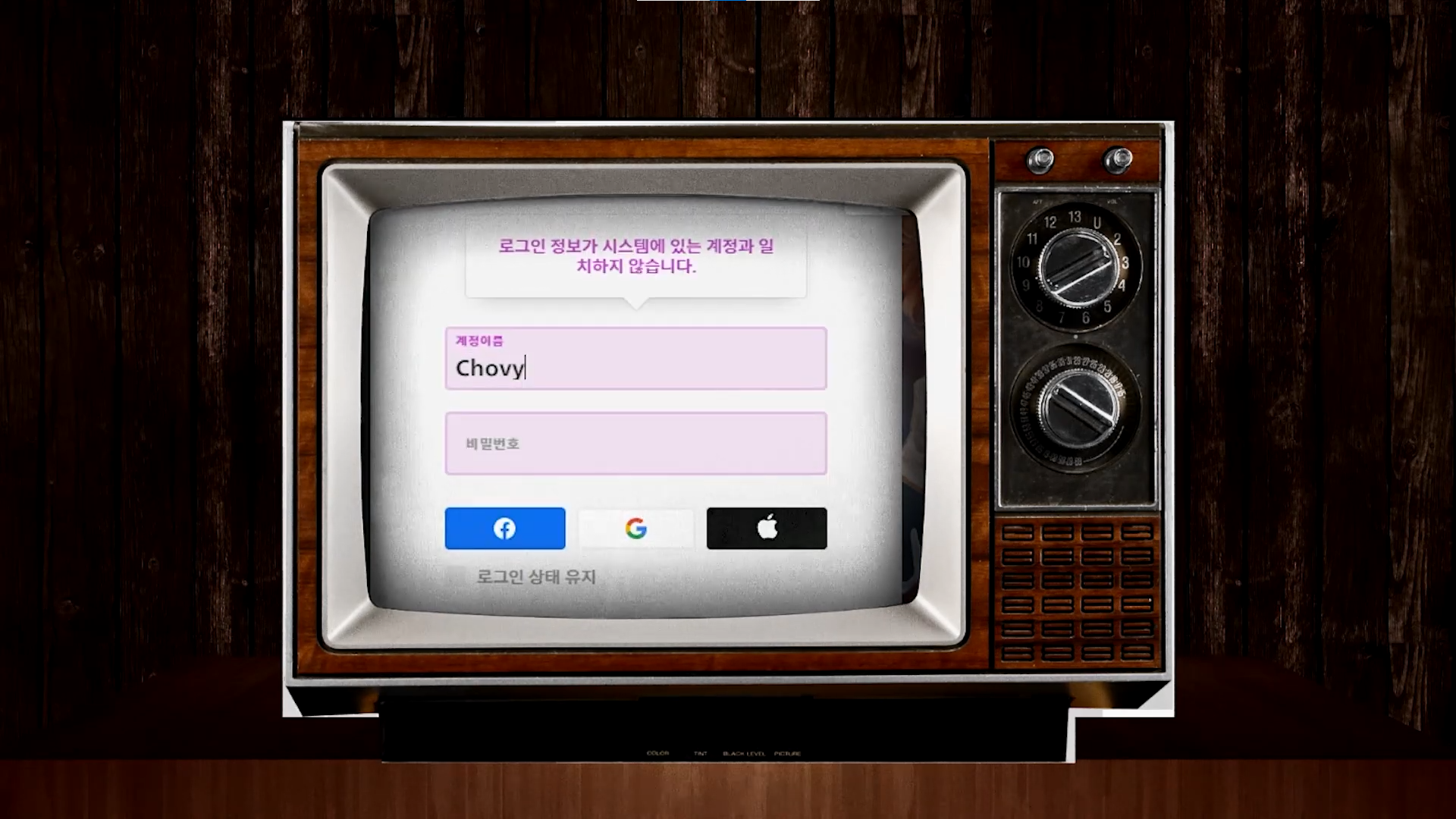 로그인에 실패하고 평화로운 BGM도 꺼지는 영상입니다.