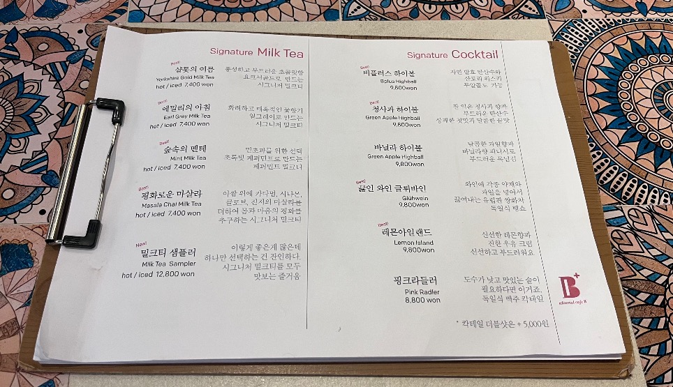 그래서 밀크티 샘플러 하나, 맥주 한병, 출출한 배를 채워 줄 우삼겹 로제 떡볶이를 시켰어요.