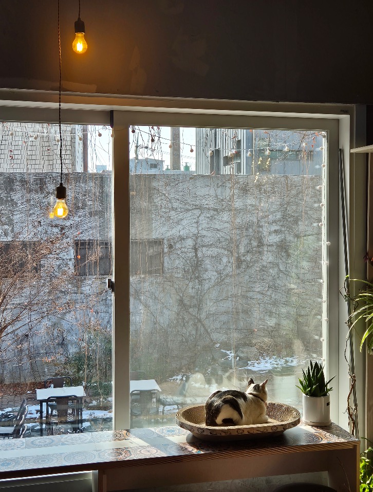 큰 창을 통해 들어오는 햇빛도 따뜻했어요.